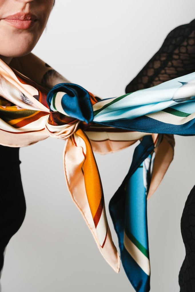 Expertly crafted from luxurious 18mm silk twill, this 90 x 90cm square silk scarf offers a rich texture, fluid drape, and a double-sided print that enhances its depth and artistry. Each piece is meticulously finished with hand-rolled hems, a mark of Artifact’s dedication to timeless craftsmanship.