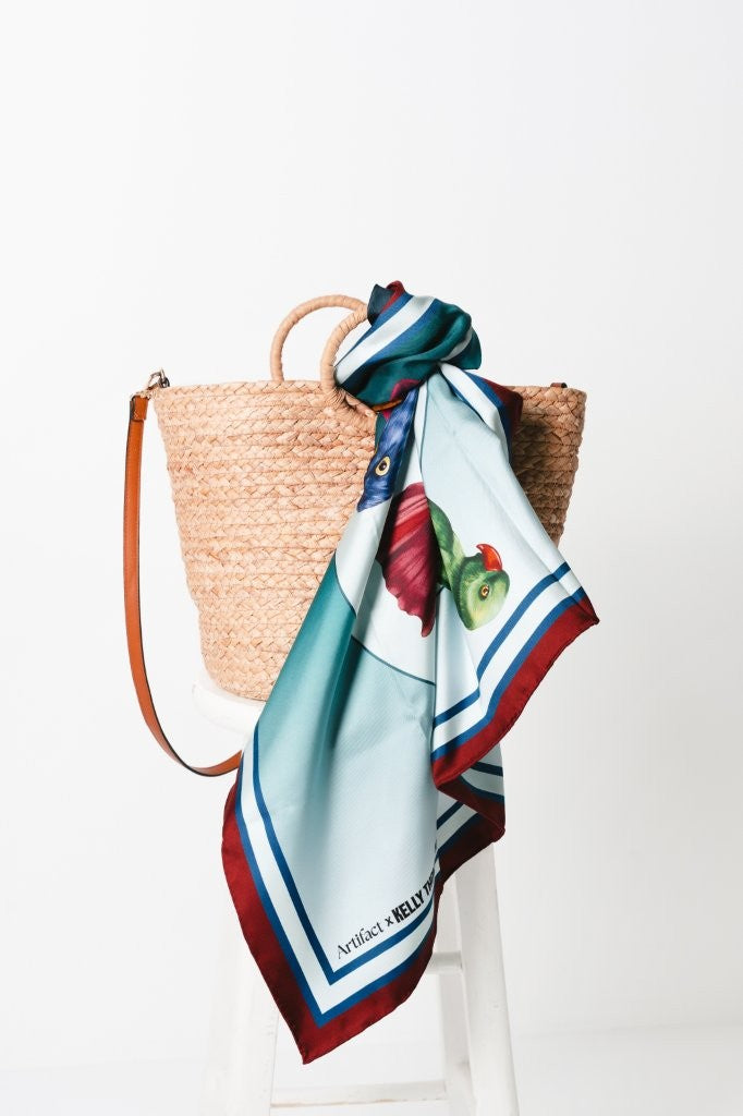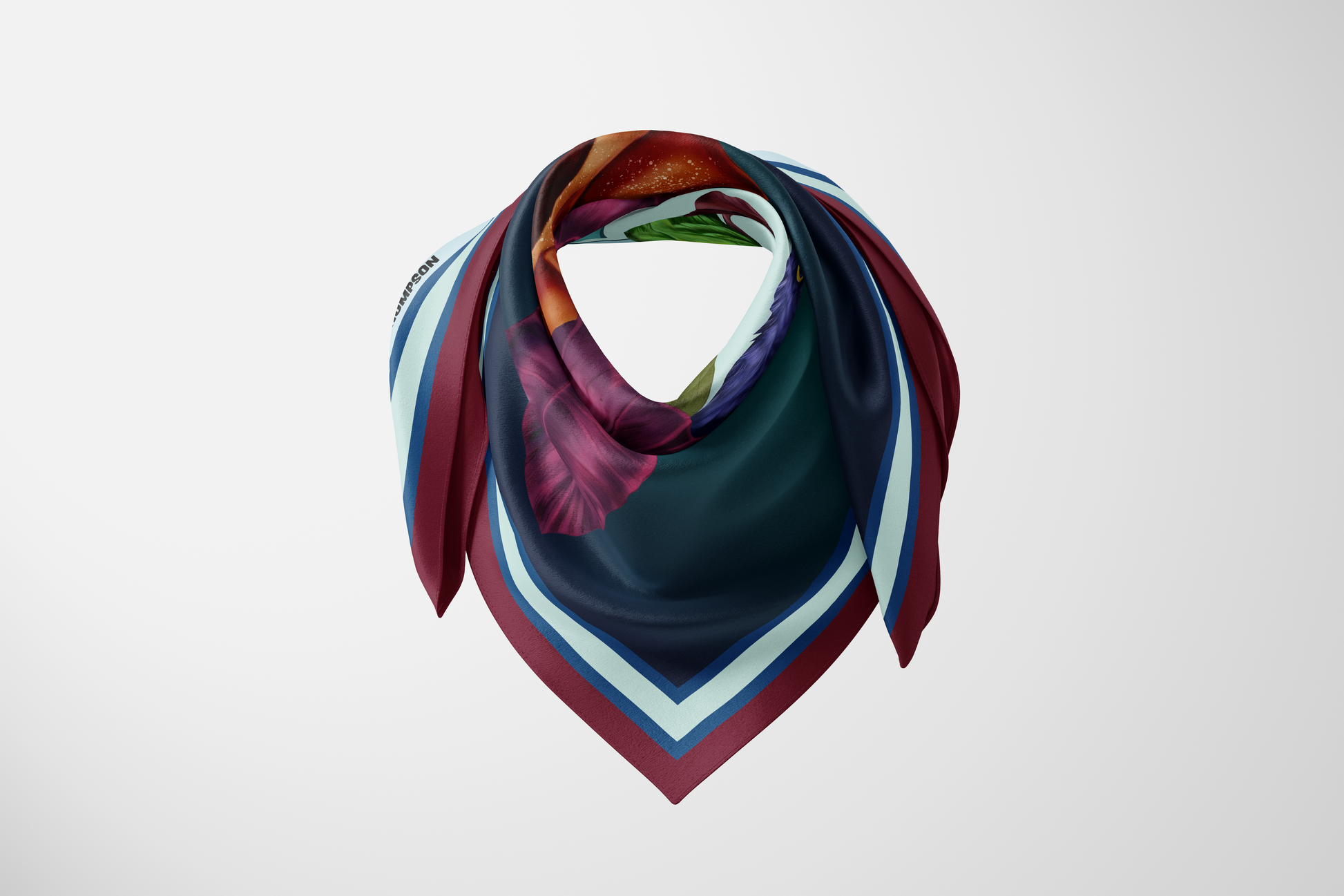 Crafted from luxurious 18mm silk twill, this 90 x 90cm square silk scarf offers an elegant drape, luminous sheen, and a double-sided print that enhances its intricate detail. Finished with hand-rolled hems, each piece reflects Artifact’s commitment to timeless artistry and enduring quality.