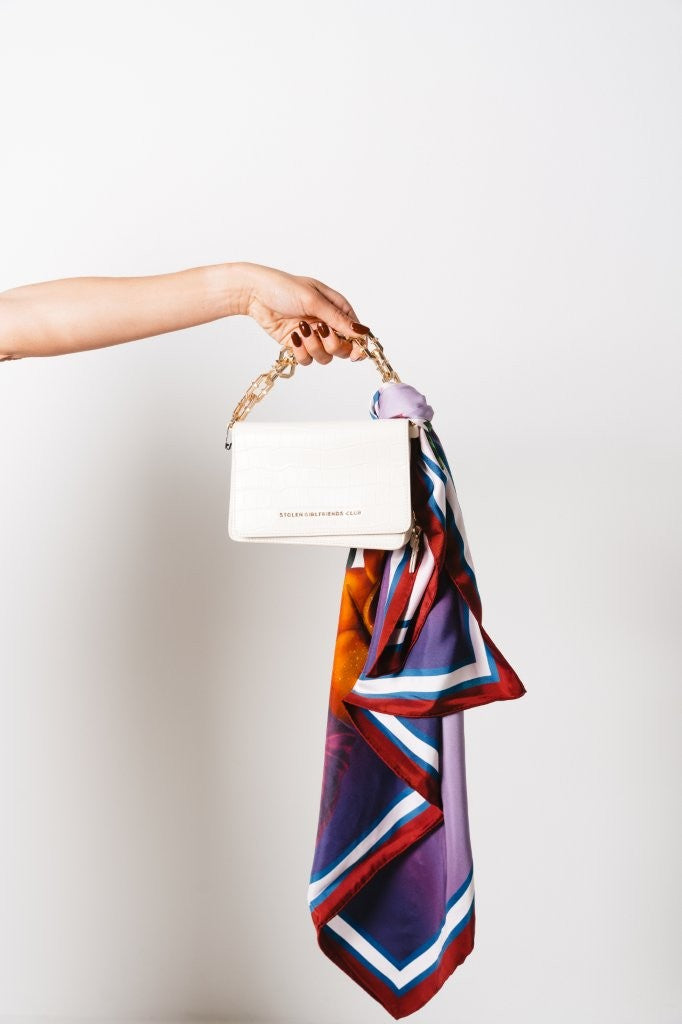 Crafted from luxurious 18mm silk twill, this 90 x 90cm square silk scarf features a luminous finish and graceful drape, with a double-sided print that enhances every intricate detail. Each piece is completed with hand-rolled hems, showcasing Artifact’s dedication to craftsmanship and enduring beauty.