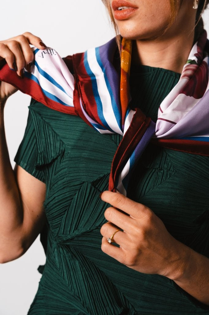 Presented in Artifact’s signature luxury gift box, Plume Plum is a limited-edition collector’s item - a luxury designer silk scarf designed to be worn, gifted, and treasured for a lifetime.